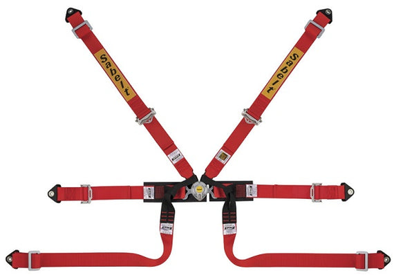 The Sabelt lightweight formula 6 point harness has 2" wide shoulder straps which allow a more precise fit to an FHR / HANS device. Lap straps are also 2" wide and feature a 3" wide load spreader pad for better improved comfort. Lap strap adjustment is a pull up type for ease of use. The release buckle is a new compact design with reduced weight.